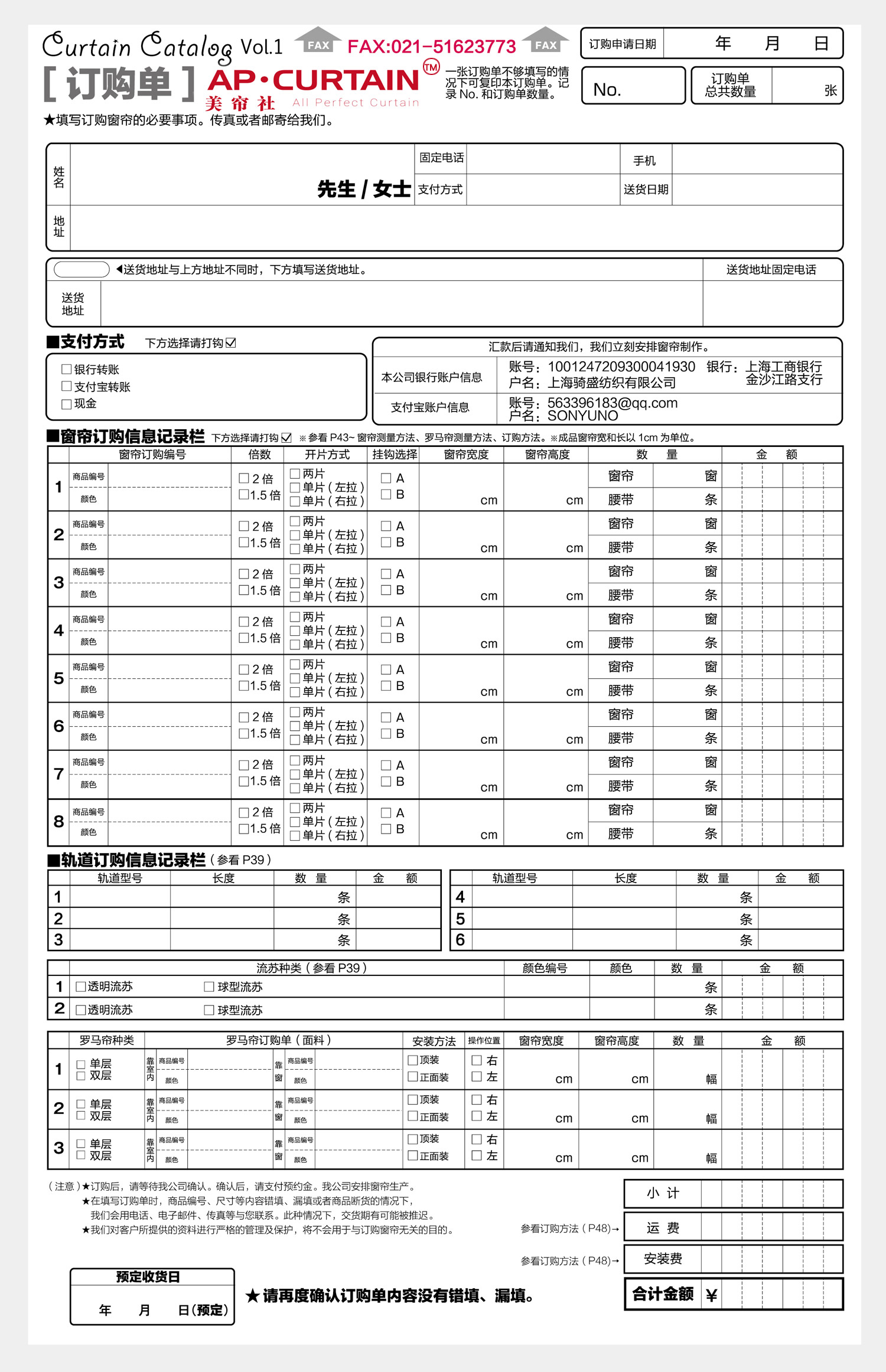 窗帘订购单